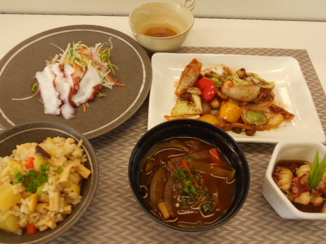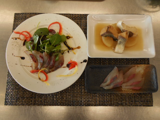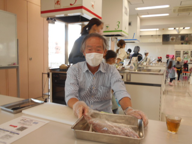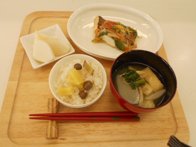 天然の鯛をテーマに開催しました。 お子様が主体となって取り組んで頂く毎回人気の 講座です。 北井先生のお魚講座は楽しいひと時です。 鯛の野菜あんかけ・季節の味噌汁(カブ・しめじ・人参) ・むかごとさつまいもの土なべごはん・梨と季節の食材を ふんだんに盛り込んだメニューとなっています。 |