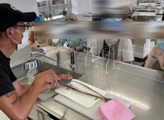 さばきの基本となるアジは、攻略ポイントも多く 大変楽しいです。 ![]() 是非、また近いうちに今日されたことをもう一度 実践されることをお勧めします。 ![]() 緊急事態宣言下ですが、皆様のご協力を得て本日は、 実施させていただきました。 教室は9月12日までお休みさせていただきます。 その間に予定しておりました講座にお申込み 頂きました皆様には、大変ご迷惑をおかけし 申し訳ございません。 |