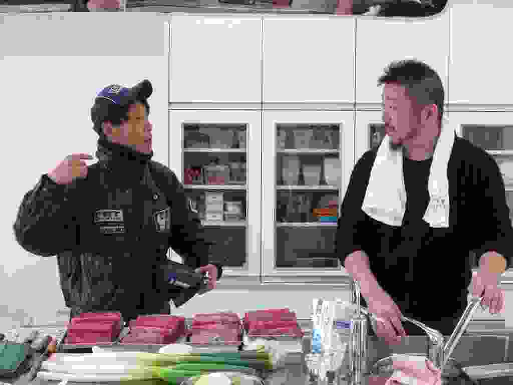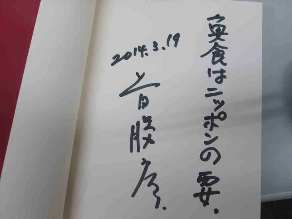 2時間前から会場入りしていただきました。 お店の開店前に駆けつけてくれた山嵜先生との奇跡のツーショット 現在の水産の現状や魚離れの打開策など講演後 流れるようなすばらしい話術と技術で 塩マグロから、和・洋・中のバリエーションや どんな魚でも応用できる塩サケの湯煮とその和洋中のバリエーション。 ほんとに目からウロコが落ちました。 これは、今日ご参加されなかった方にも なんとしてでもお伝えしたい!と強く強く思ったので、 頭の中で新講座企画中です。 帰りにお願いして新刊本にサインしてもらいました! 上田さん、ご参加のみなさん、今日は本当にありがとうございました。 昨日から、不可抗力で食べ過ぎていて 、 今日のために久々に出してきたRe-fish Tシャツが、 新鮮な魚のように ピッチピチです。 |