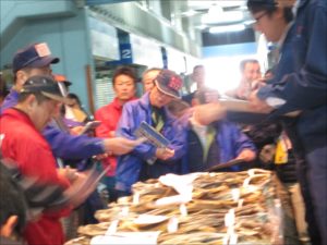 今日は、魚果菜塾 テーマはくじら。 塩干仲卸のヤマロクの藤井社長を講師にお迎えしました。 一時間ではたりないくらいの 盛りだくさんのお話に 皆さん熱心に耳を傾けていただき、 クジラベーコンとおばけ 鯨の刺身三種 特選はりはり鍋 豪華試食に舌鼓。 いやぁ、知らないこといっぱいありました。 ほんといい講座となりました。 ありがとうございました。 そして魚果菜塾の前には お正月にはかかせない棒鱈のせりがありました。 須佐野中学のトライやるウィークできてくれた Fさん撮影の写真です。 Fさんにはこのあとの魚果菜塾も手伝ってもらい、 大助かり。 初めて来たというのに お使いにも走ってもらいました。 本当にありがとう! また来てね!! やっと写真がアップできるようになりました。 うちのホームページを作ってくれた会社に電話して泣きついたら 「アクセスログがたまっています」 意味がわからないけど、直してもらいました。 ストレスがたまっています・・みたいなもんかな。 |