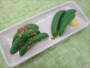 今日の魚果菜塾はそらまめとスナップエンドウ」です。 JA鹿児島県経済連大阪事務横所横峯所長と はるばる指宿からお越しいただいたJAいぶすき山脇課長に 行ったこともないのになぜか懐かしい鹿児島弁で このお豆たちの興味深いお話をうかがいながら 定番スナップエンドウとマヨネーズ、スナップエンドウのピーナッツ和え 焼きソラマメとソラマメフライの試食もありました。 お土産もたくさん用意していただきました。 ありがとうございました! 次回は3月14日 愛媛県のかんきつです。 わたしが本日着用した「豆ピアス」です。 この日のために買いました!というわけではないのですが、 今日つけずして、いつ着けるねんというシロモノです。 昨晩から、つけ忘れたらどうしよう~とソワソワ。 無事使命を全うしました。 ヨカッタ。 この安心のせいなのか 魚果菜塾終了後、名刺をとりに行こうとあわてたら、 ものすごく大胆に豪快に転びました。 回転レシーブか巴投げかというくらい。 目撃者に「上手に転んでました」と褒められた。 左腕を打撲しただけかと思いきや、 一時間ごとに 肋骨→首→左肩と痛いところが増えてます。 明日、歩けるだろうか・・。 |