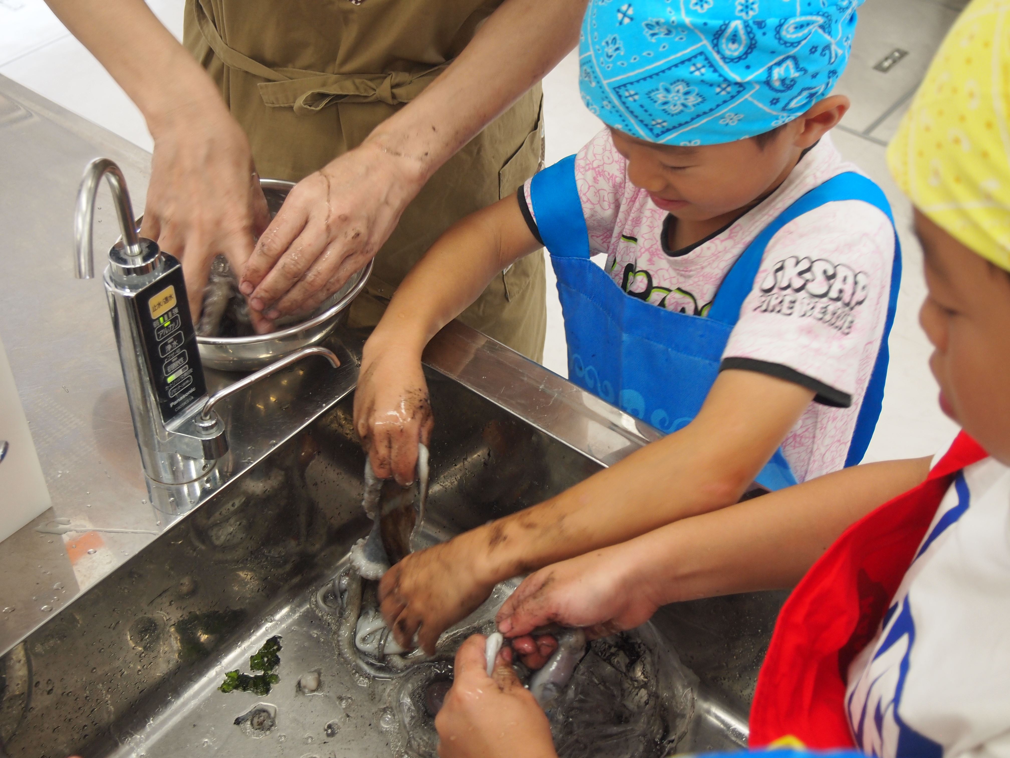 参加者の皆さんには扱いやすい子ダコの