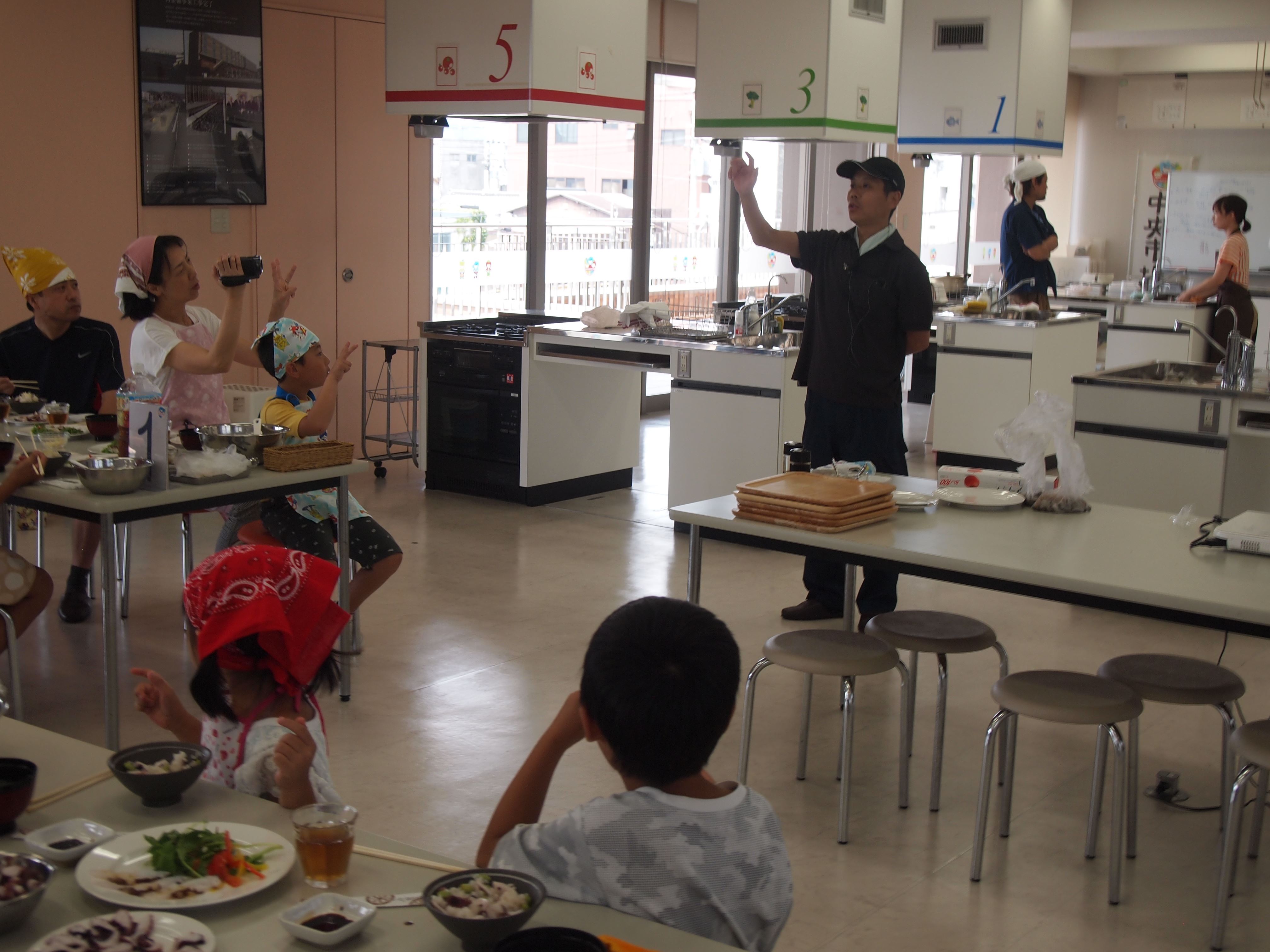 大勢で講師をしてくれる「魚河岸親子料理教室」