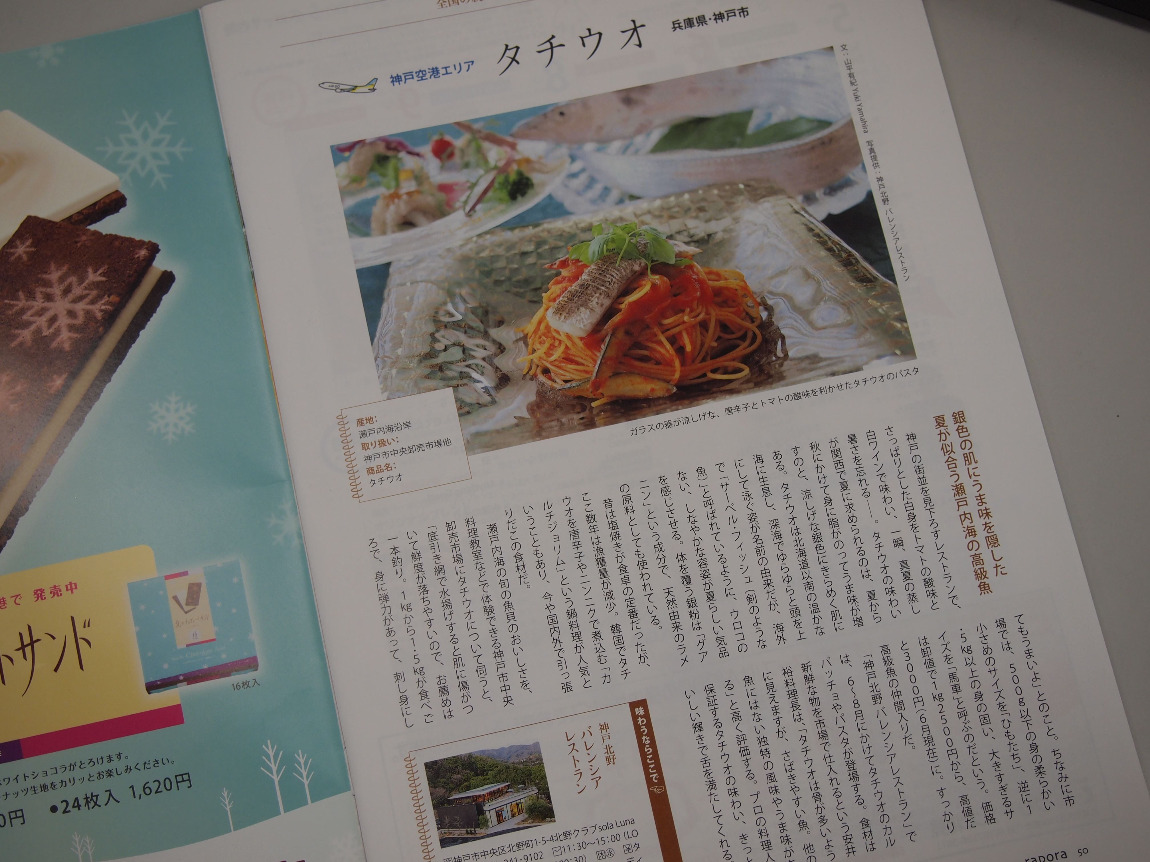 今日は高橋先生の「季節を愛でる料理」 今日は入荷の多い鱧の出番です。 骨のだしでいただく雑炊も絶品 次回は9月13日 海老レンコン饅頭ほかです。 先日来、中央市場で取材協力をさせていただいていた 「AIR DO」さんの機内誌が届きました。 中央市場の太刀魚が イタリアンの人気店「バレンシア」のパスタになって、 掲載されています。 なんとも涼しげで美味しそう!! 中央市場の太刀魚が、日本の上空を飛んでます。 |