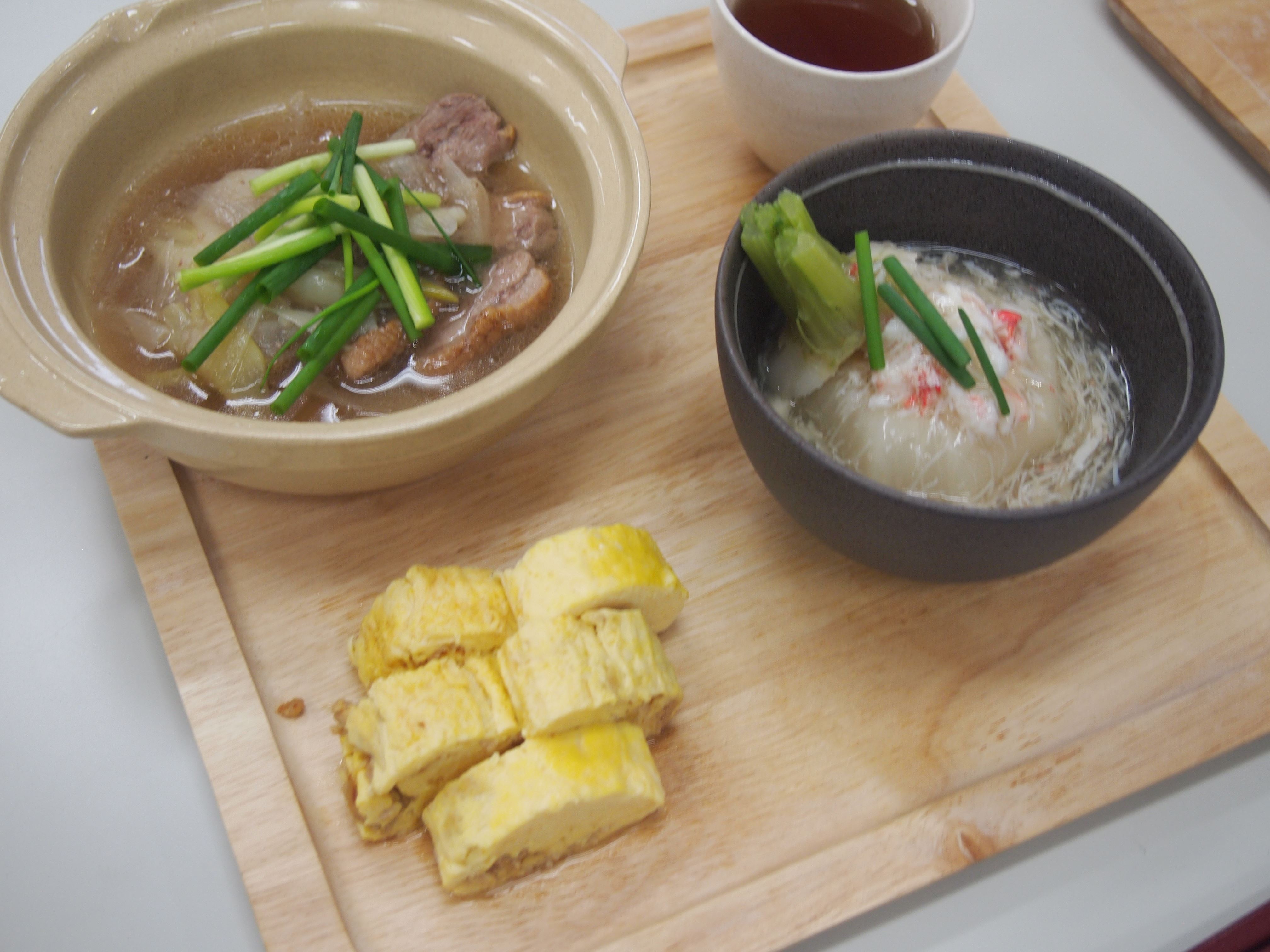 鴨葱鍋とだし巻き卵と蕪の蟹あんかけ。