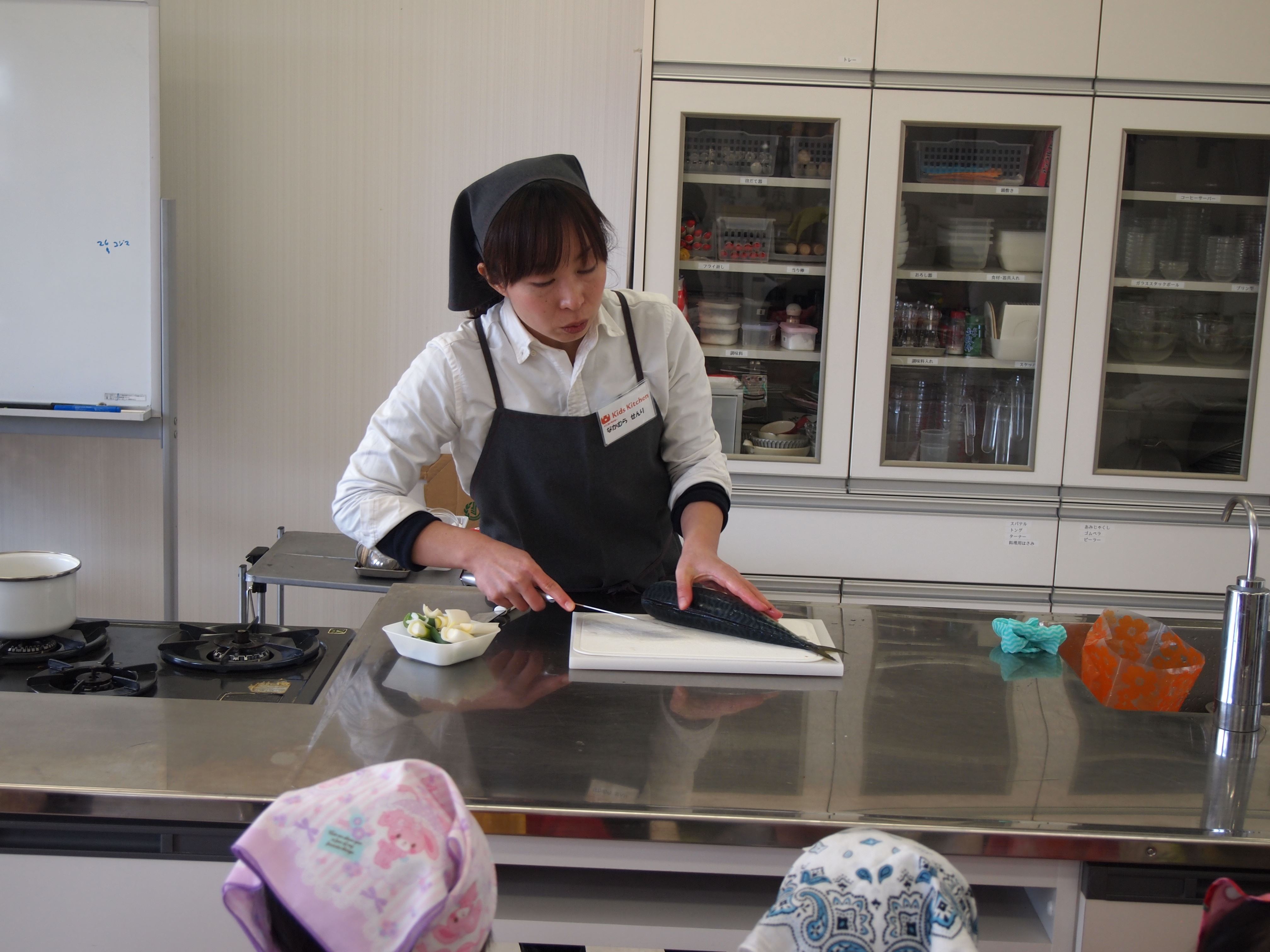 今日はミニキッズキッチン「自分で作るお魚定食」
