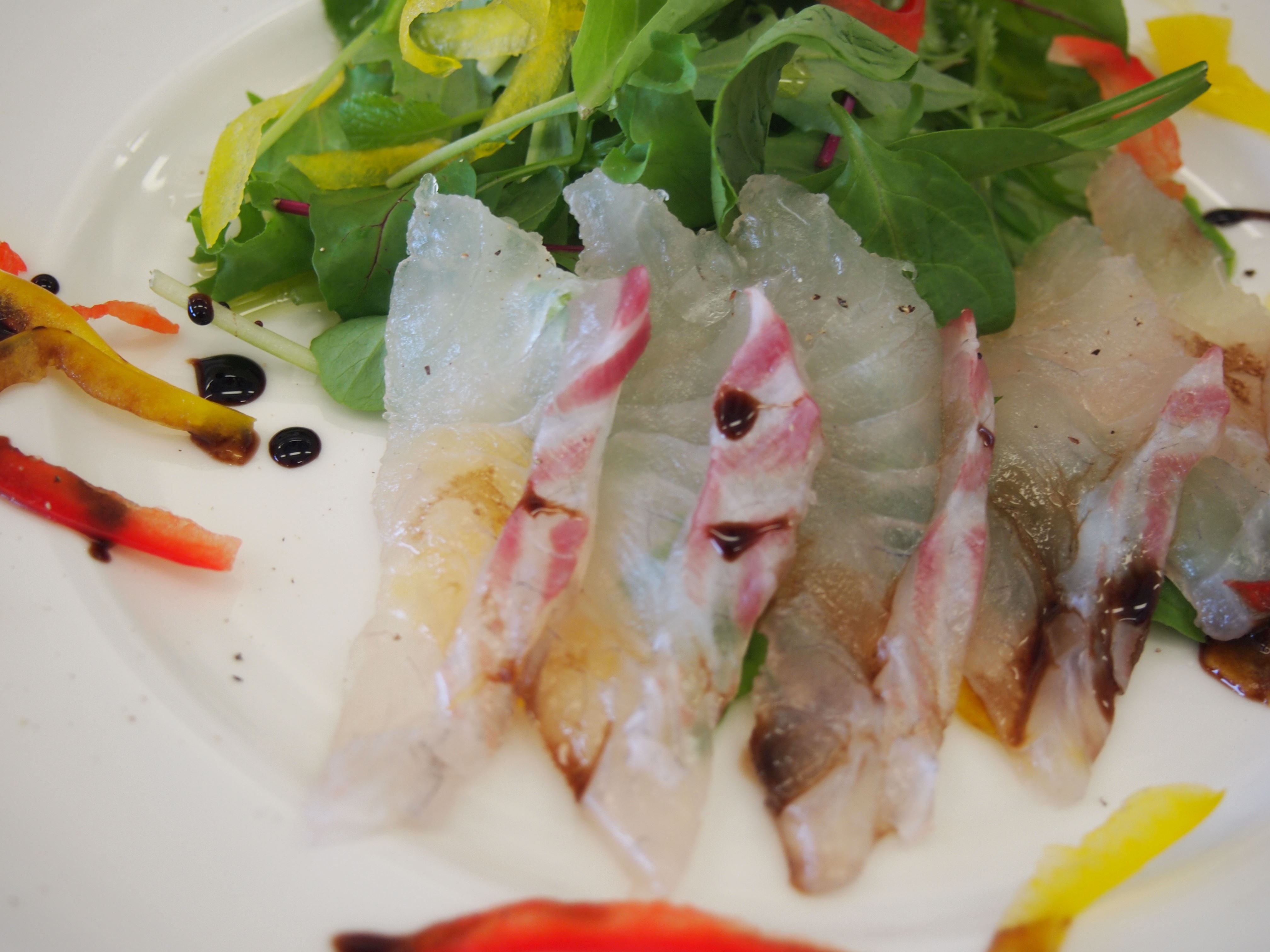 桜鯛のカルパッチョとカブト煮