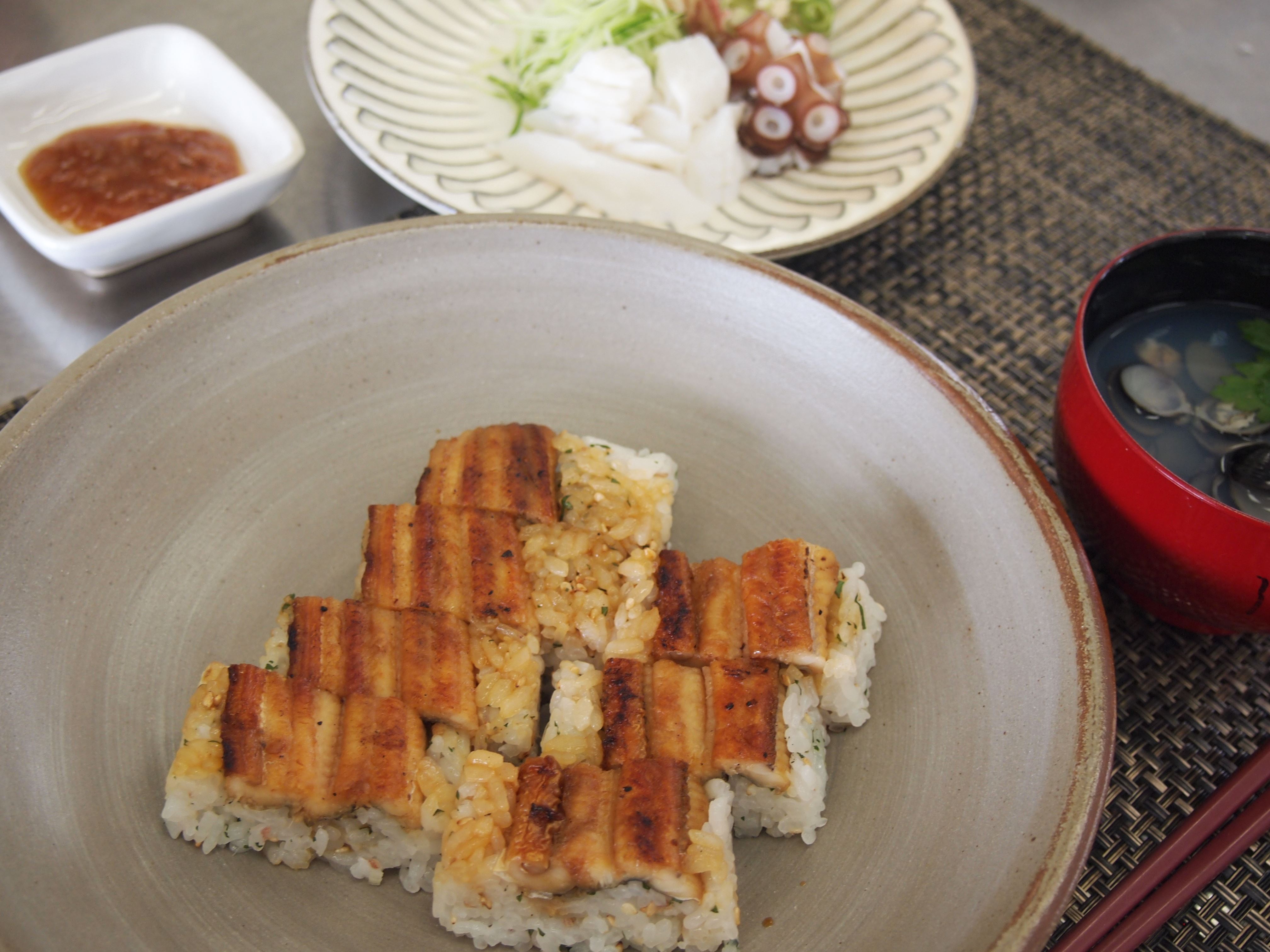 焼きアナゴの箱ずし2本とたこ湯引き