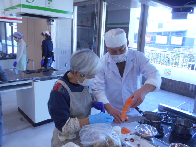 今日は、皆様お一人づつ、桂剥きをして頂きました。
