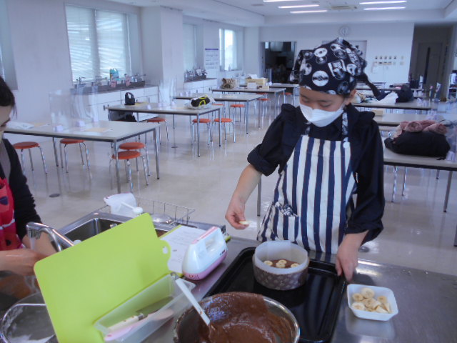 本日の親子ケーキ教室は、バナナ入りのガトーショコラです。