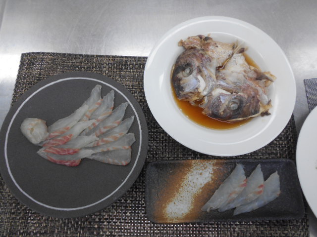 刺身、かぶと煮、カルパッチョとさせて頂きました。