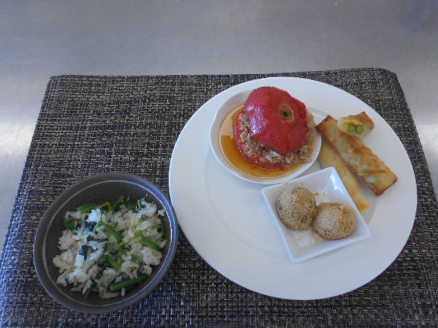ほうれん草の混ぜご飯、枝豆のチーズスティック、