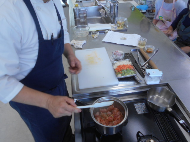 ポアレの前に作りましたが、トマトを煮詰めるコツや