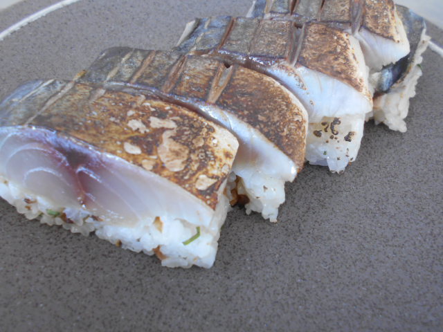 さっと炙って香ばしい鯖寿司出来上がりました。