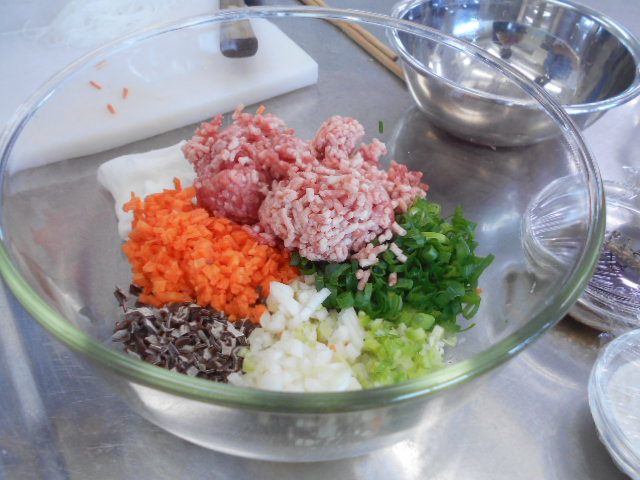 こちらはを豚ミンチと野菜やきくらげとを混ぜ込んで
