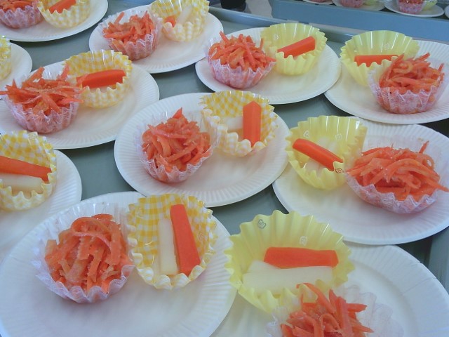 今回のご試食はバターにんじん、ピクルス、大根カレーの3品です。