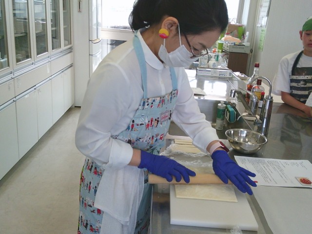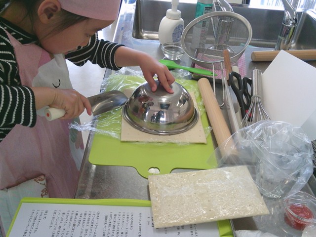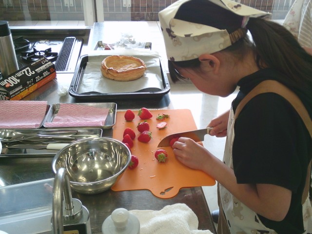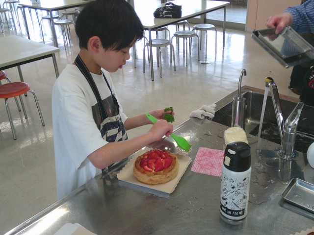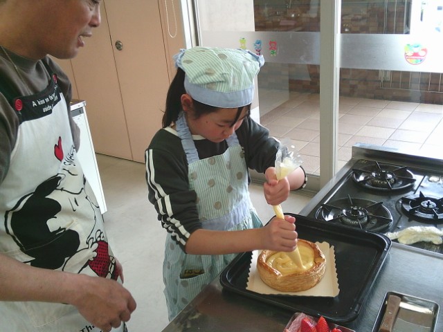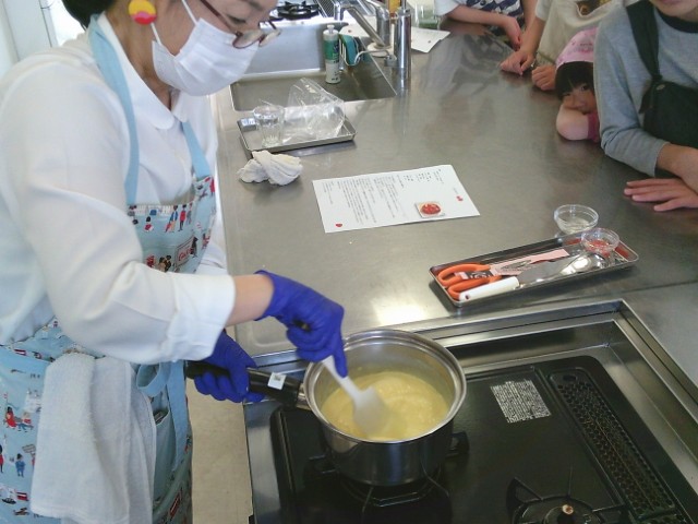先生のカスタード作り、子供さんも真剣。