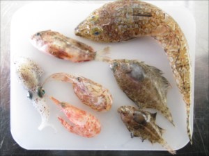 フルセと一緒に水揚げされた海の仲間たち。