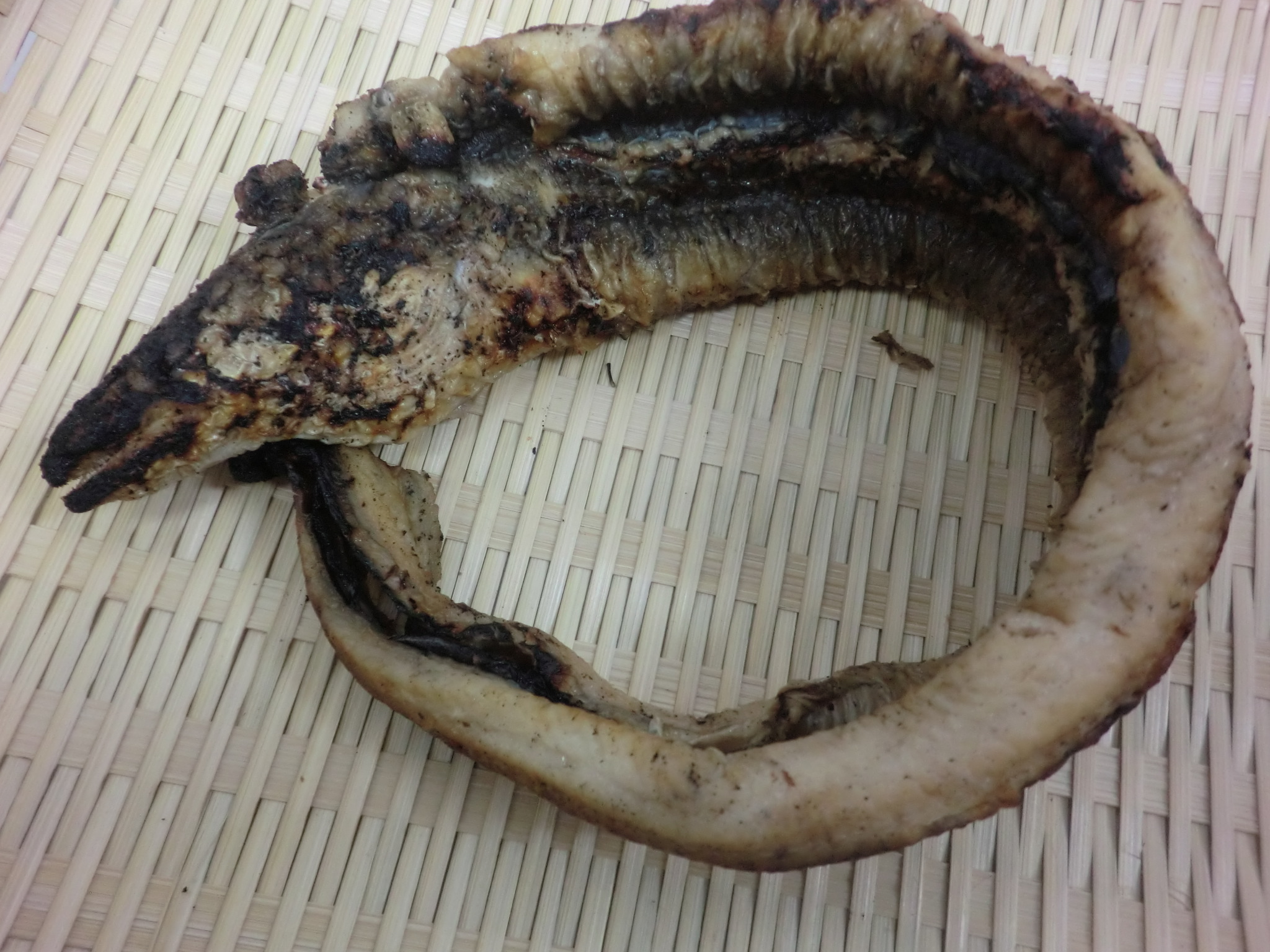 朝焼きの絶品焼きアナゴ(厚みを見てもらうために丸めてみた)を