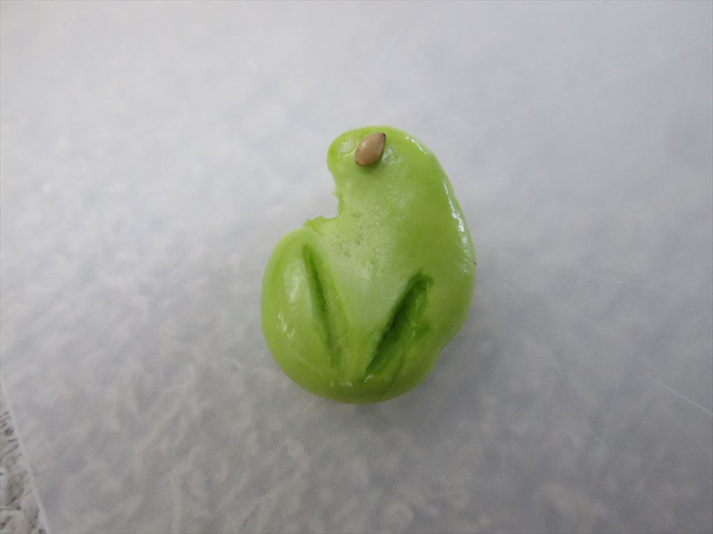 先生がソラマメで作った一寸蛙。