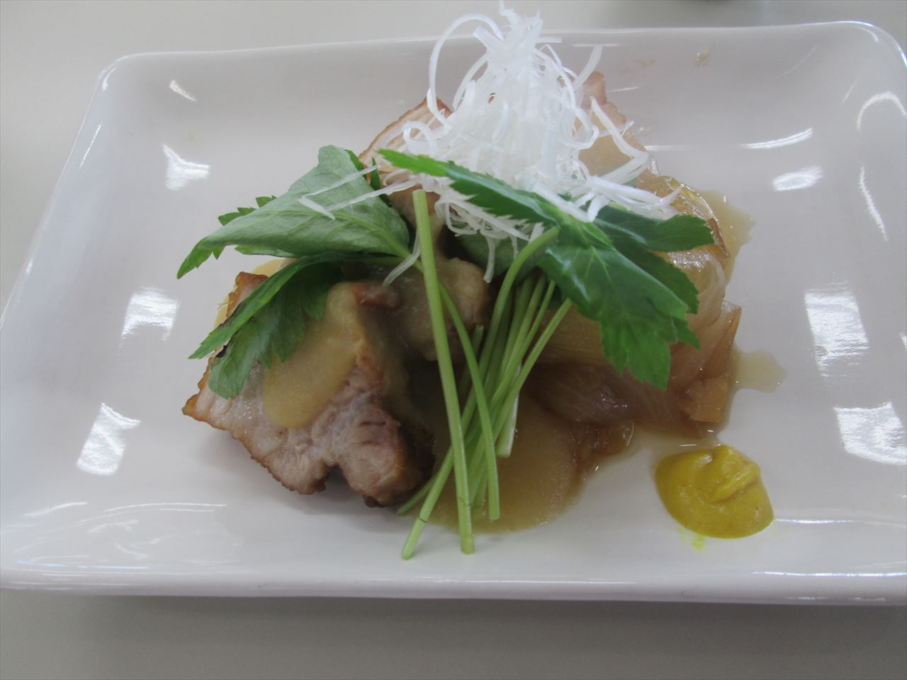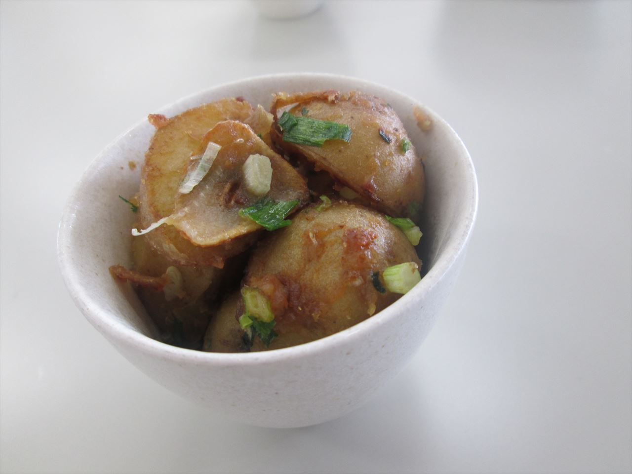 豚の角煮、なすの揚げ煮、こじゃがいもの味噌炒め。