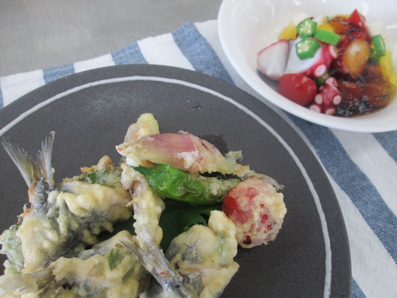 今日は鰯の梅しそ揚げとタコのポン酢ジュレ