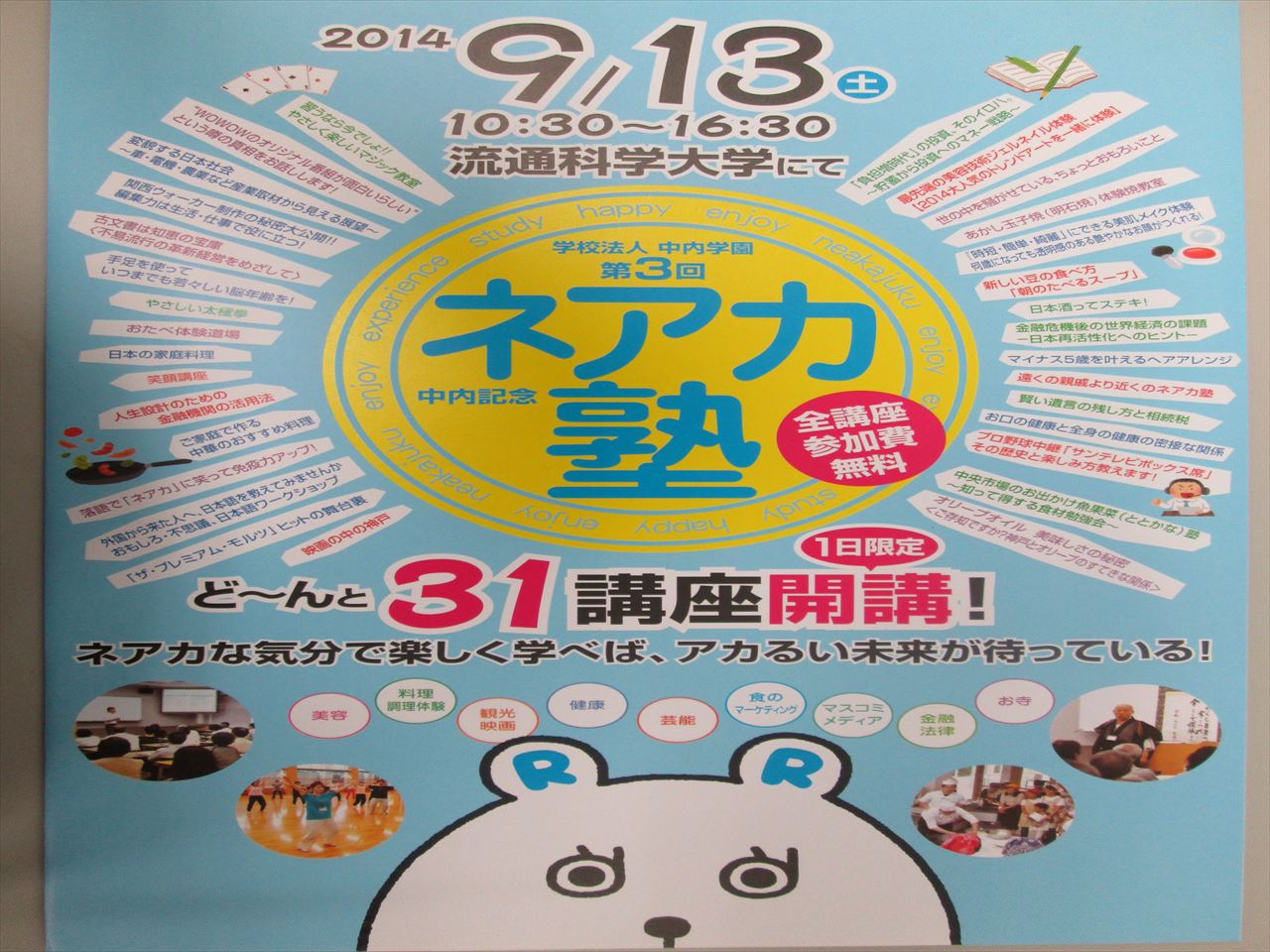 毎月中央市場で開催している「魚果菜(ととかな)塾」が 9月13日土曜日 「流通科学大学のネアカ塾」→の中で、 おでかけ講座を開催します 8月18日月曜日午前9時からネアカ塾ホームページ上で受け付け開始 (はがきでも申し込み可能です) 先着順なので、お申込みはお早めに。 15日から17日まで 中央市場はお休みです。 |