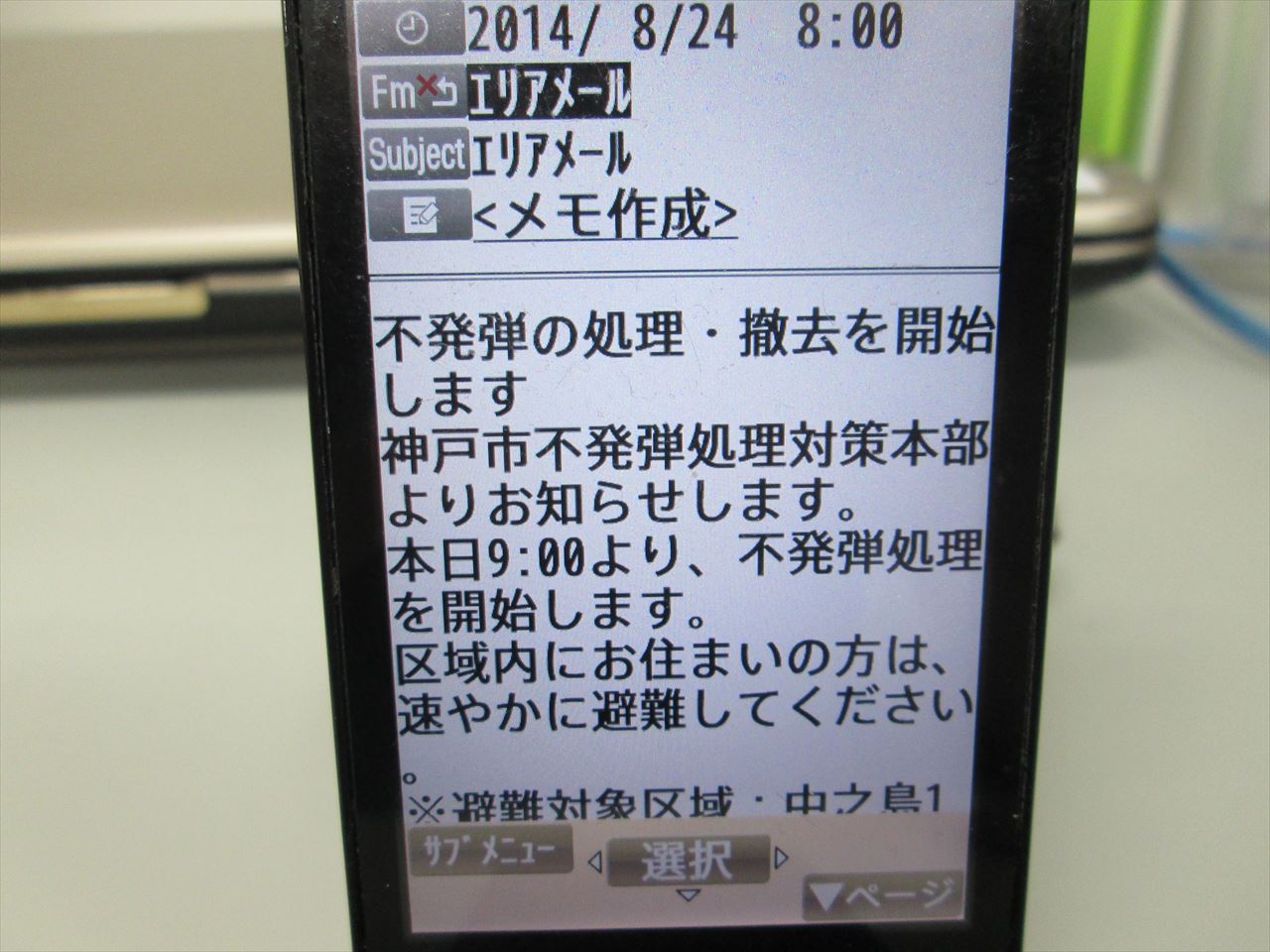 今朝、職場の携帯見たら、こんなエリアメールが来ていました。