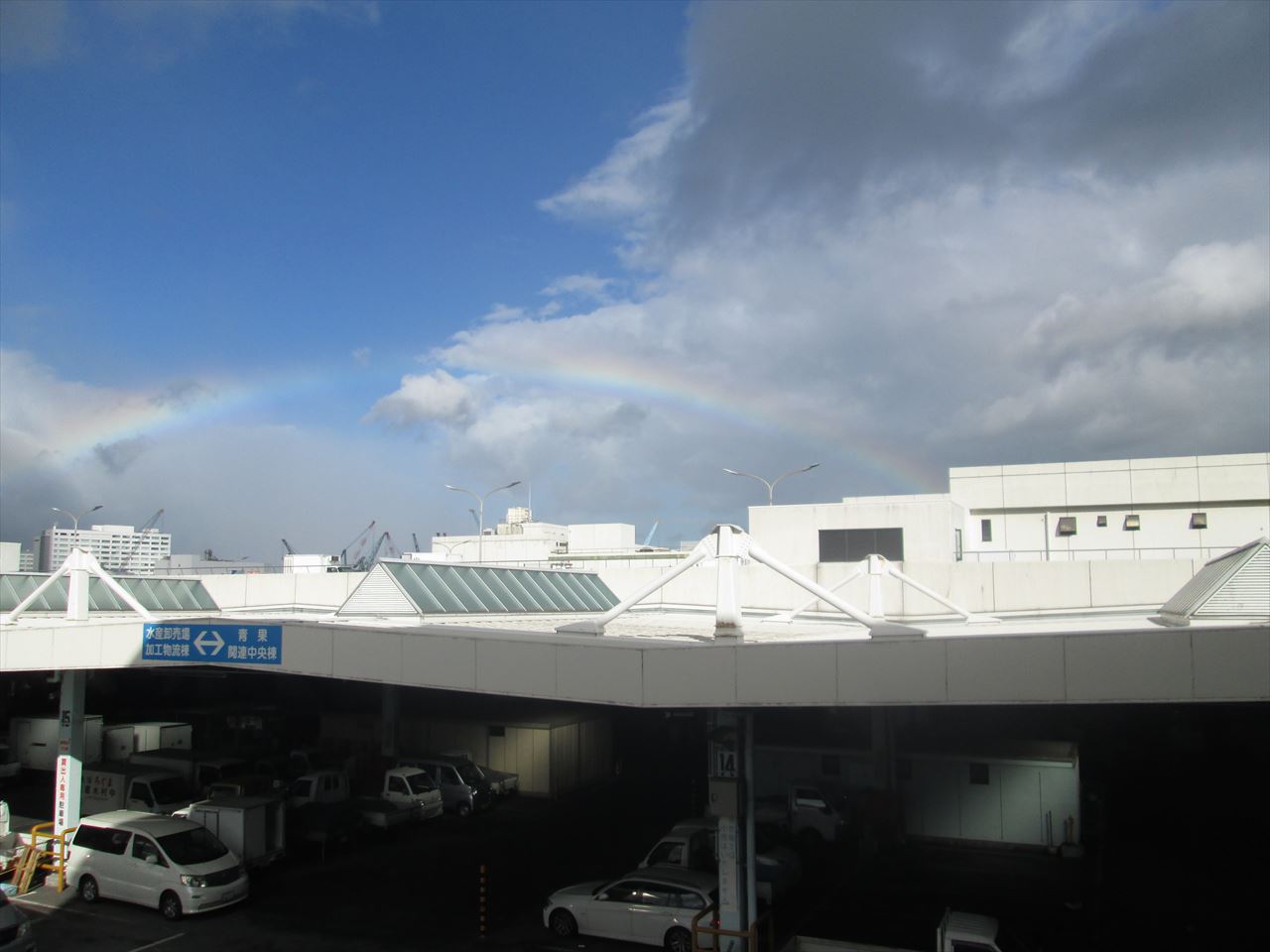 お昼には、低いところに虹が出てました。