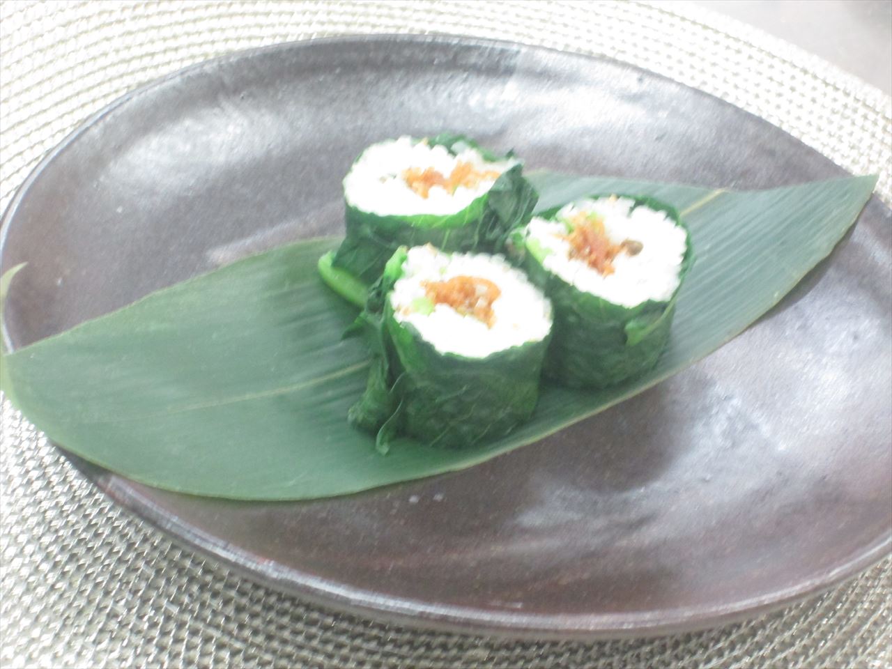 小松菜を海苔代わりに使ったお寿司の美味しさに