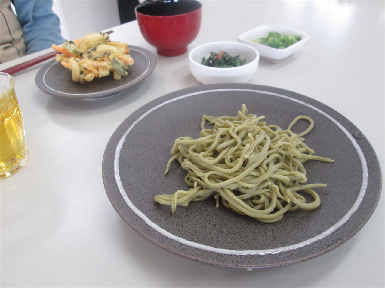 今日は特別に「手打ち茶そば」になりました。