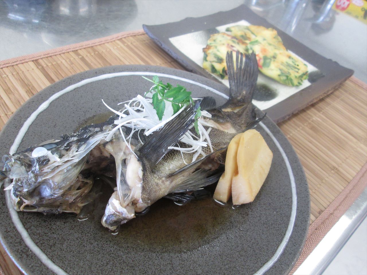 メバルと筍の煮つけとふんわり海鮮おやき