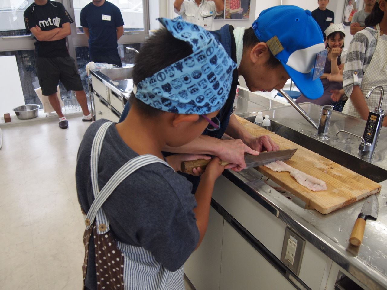 子どもたちもひとりづつ、鱧の骨切りを体験しました。