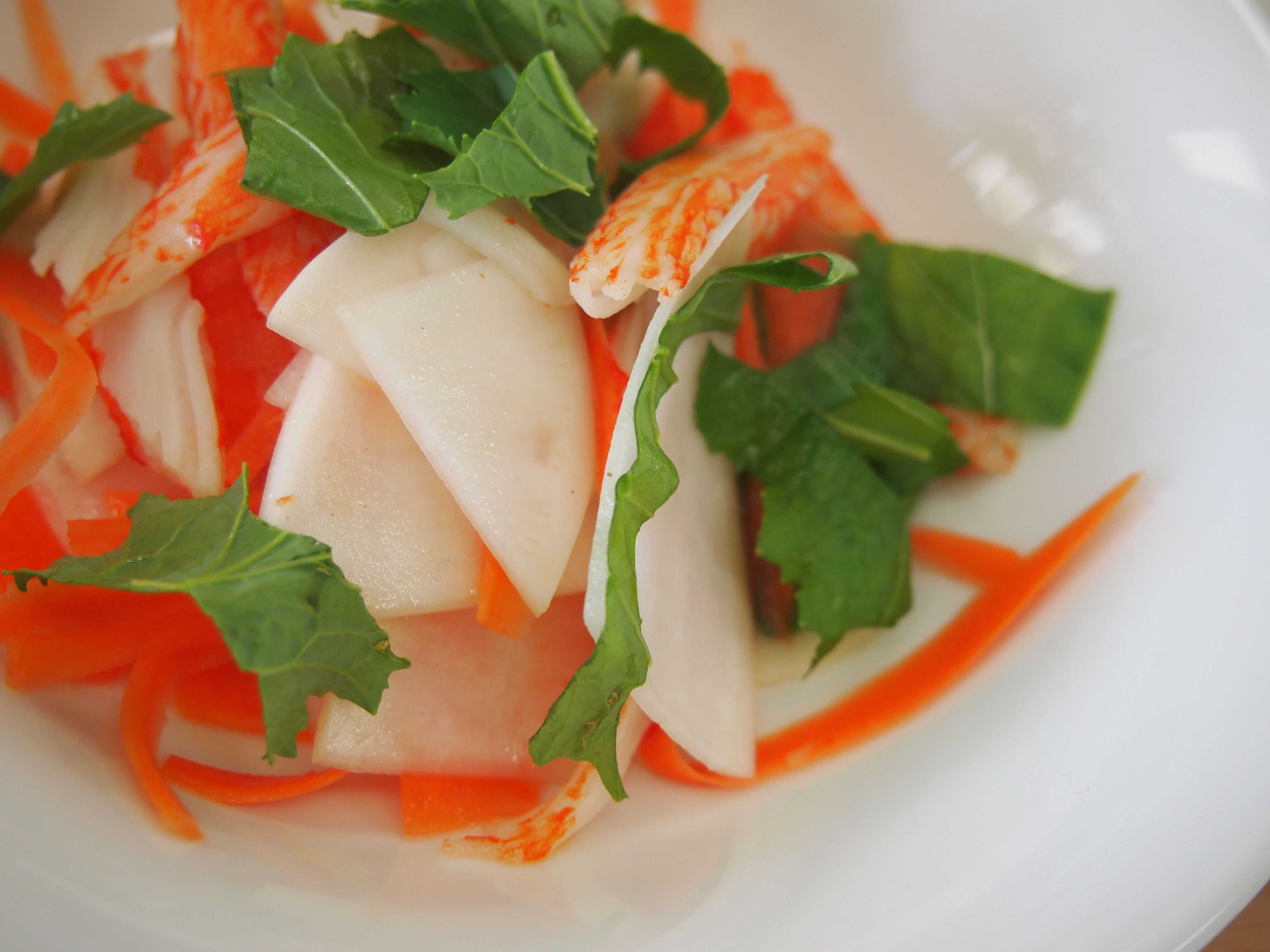 蟹の刺身に坂本先生の蕪の葉料理までついて