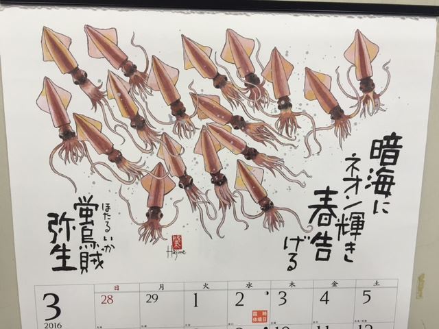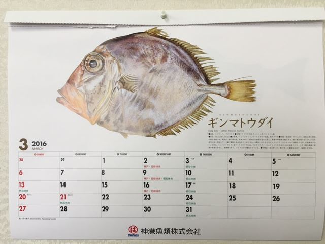 水産の組合さんの壁に貼ってあるカレンダー
