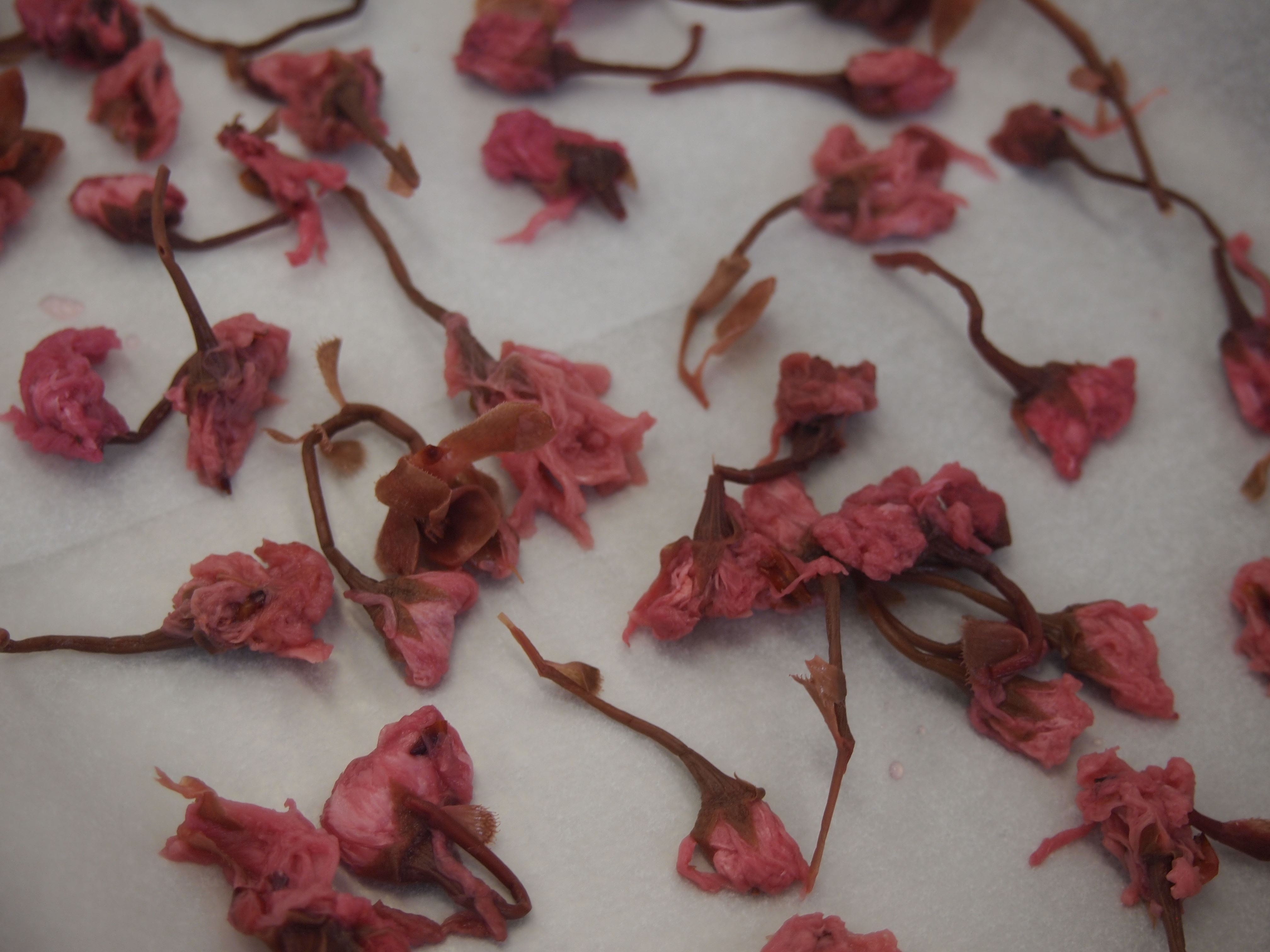 冷めてからこの上に桜色の粉糖を振りかけるので、