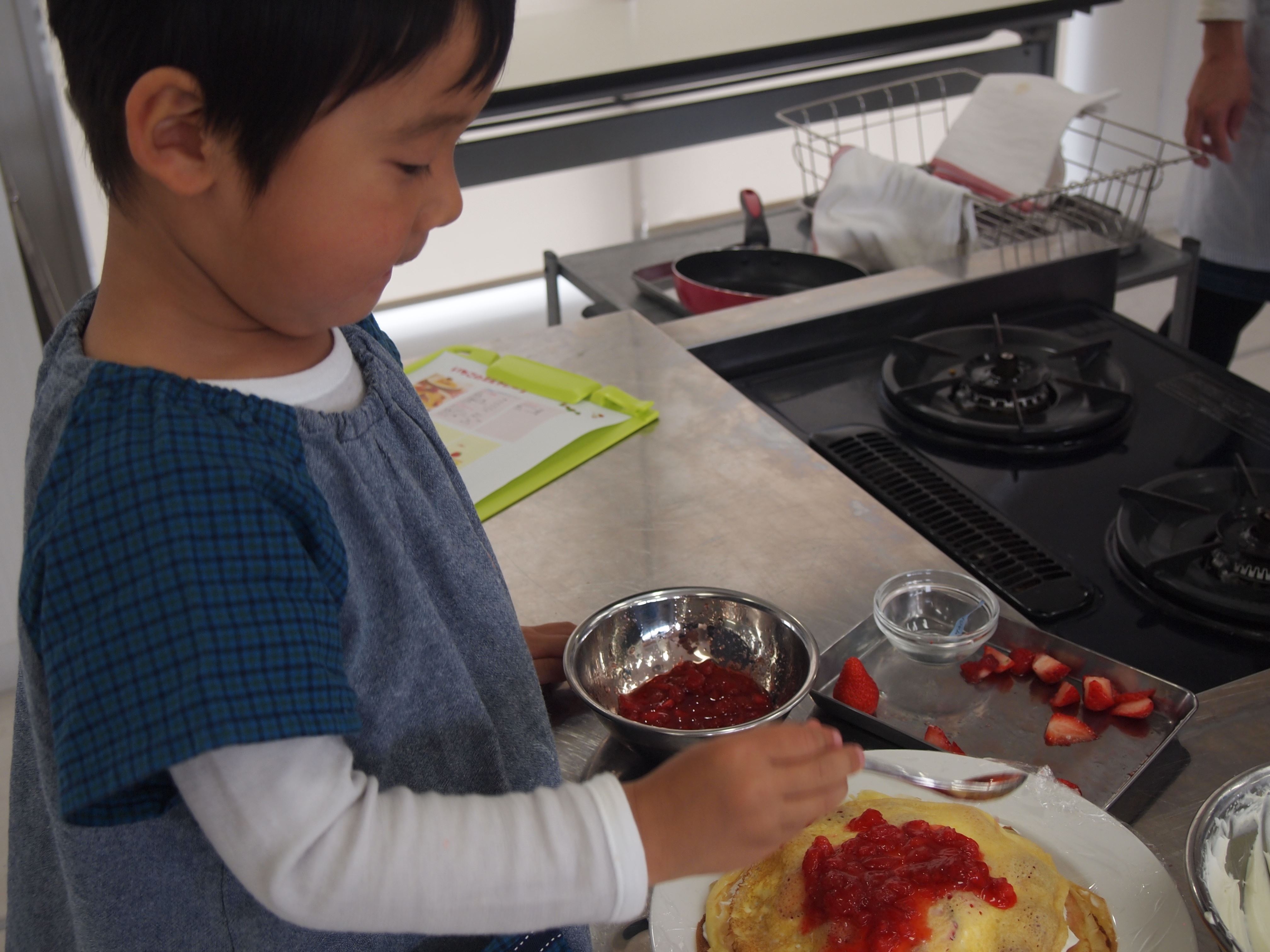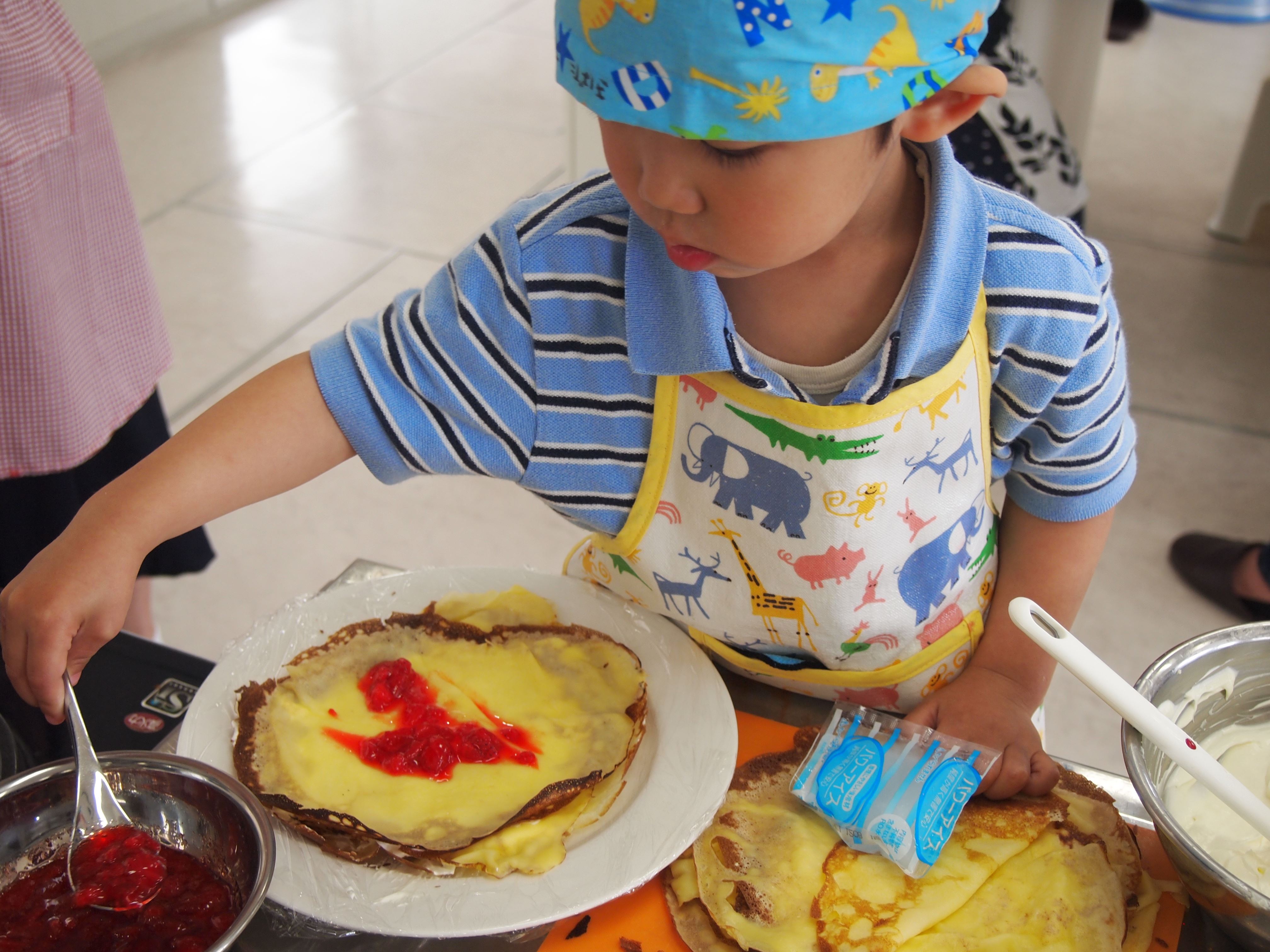 クレープ生地、ひとりで焼いてがんばりました。