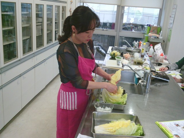 実習では、事前に塩漬けした白菜をご用意しました。
