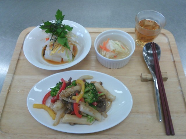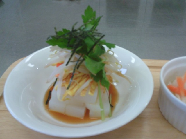 初めて食感。たっぷりの野菜と酢醤油でいただく。